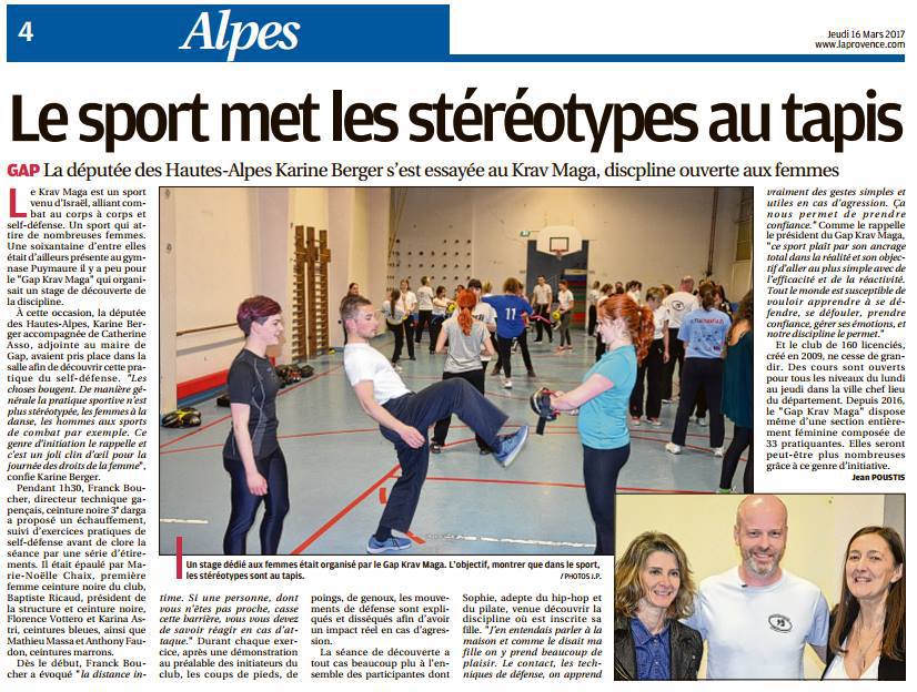 Article en ligne sur le site de la ville de Gap et sur celui de la Communauté urbaine de Gap/Tallard, concernant le stage organisé par le club pour sa 5eme année consécutive pour la journée internationale des droits des femmes.